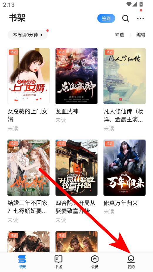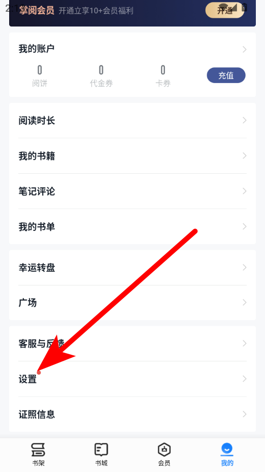 1、打開掌閱APP,點擊底部導航欄中的我的進入個人中心界面。