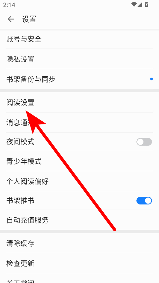 3、在設(shè)置界面,點擊閱讀設(shè)置選項。