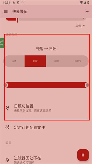 2、設(shè)置濾鏡時(shí)間,可選擇日落和日出模式,根據(jù)日照情況自動(dòng)調(diào)整,配置日照與位置信息。