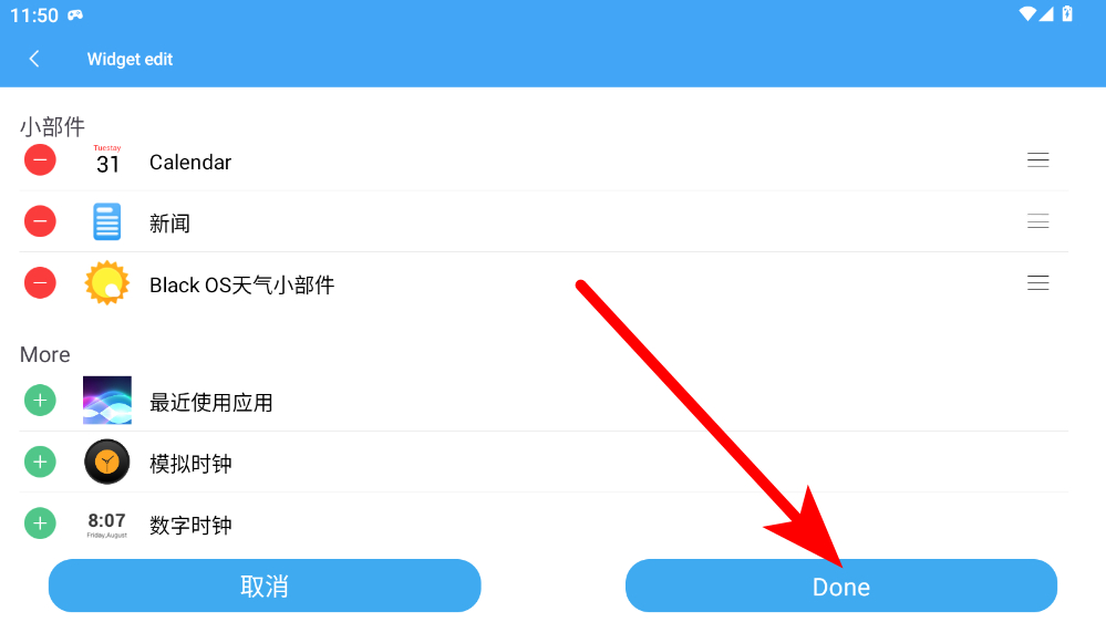 4、添加完成后,點擊頁面右下角的Done按鈕,完成組件添加操作。