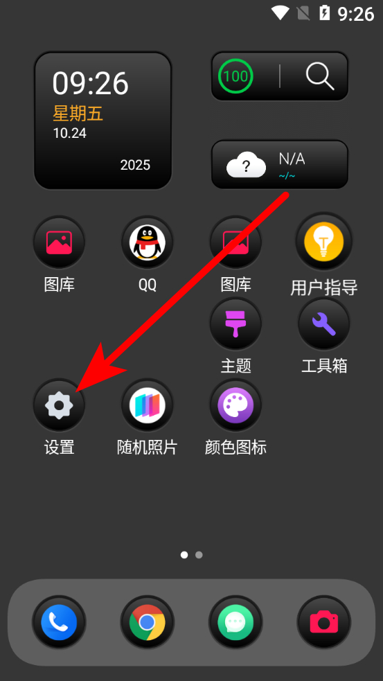 1、在安卓仿ios14主題啟動器首頁,點擊設置選項,進入設置頁面。