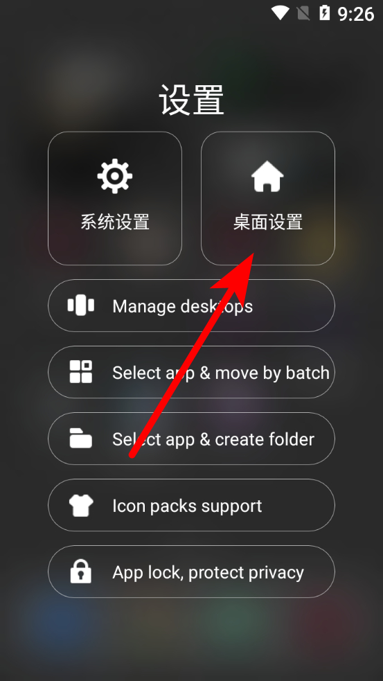2、在設置頁面,點擊桌面設置選項,進入Black OS桌面設置界面。