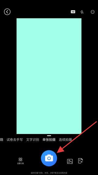 3、點擊底部藍(lán)色相機圖標(biāo),可選擇單張拍攝或連續(xù)拍攝,自動連拍多頁,適合文檔、試卷。