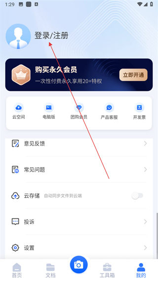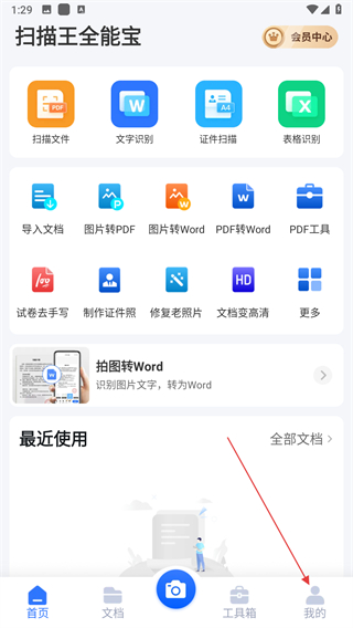 1、打開掃描王全能寶應(yīng)用,點擊我的選項,進入個人中心頁面。