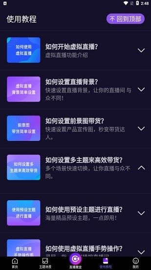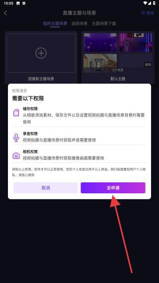 2、進(jìn)入直播主題與場(chǎng)景頁(yè)面,選擇默認(rèn)主題或下載心儀主題。