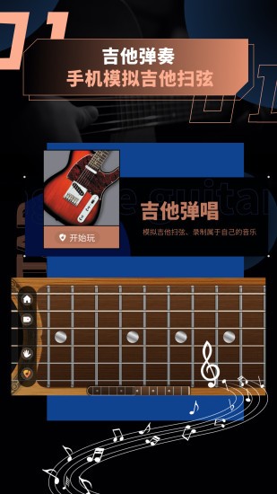 1、所有的用戶都可以直接拿來演奏,學會吉他彈唱的趣味游戲類音樂學習應用,手機線上服務讓你玩轉簡單