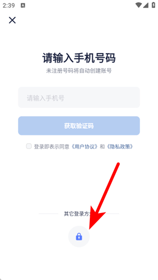 2、在個(gè)人頁(yè)面的登錄界面,點(diǎn)擊密碼樣式的圖標(biāo),進(jìn)入手機(jī)號(hào)密碼登錄頁(yè)面。