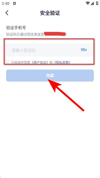 4、在安全驗(yàn)證頁(yè)面,輸入驗(yàn)證碼后,點(diǎn)擊完成隨后設(shè)置新密碼完成找回操作。