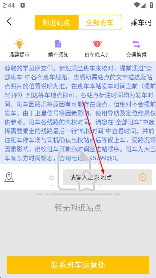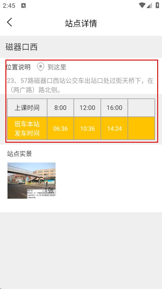 6、在站點(diǎn)詳情頁面,你可以查看班車的位置說明、發(fā)車時間等詳細(xì)信息。