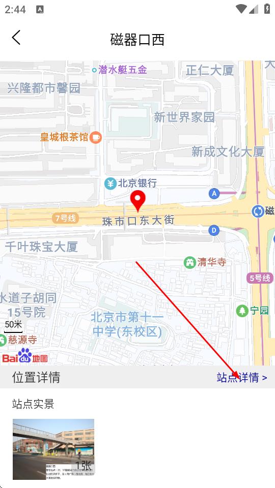 5、點(diǎn)擊所選的班車站點(diǎn),進(jìn)入站點(diǎn)詳情頁面,在頁面下方點(diǎn)擊站點(diǎn)詳情。