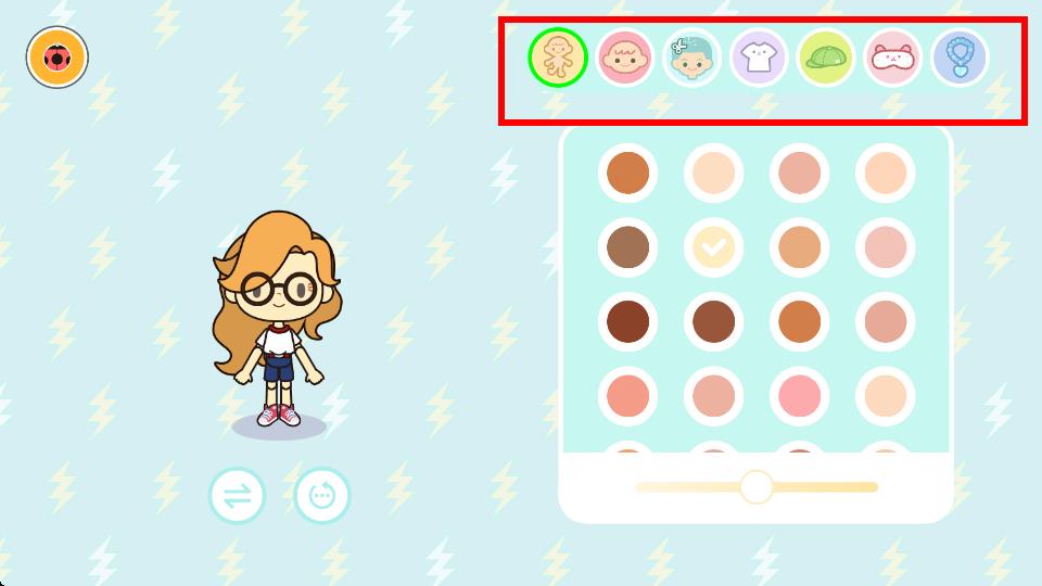 3、選中角色后,界面上方會出現(xiàn)一排裝扮圖標,點擊這些按鈕,下方會彈出各種可切換的圖標,按需選擇搭配,就能完成人設(shè)的捏制。