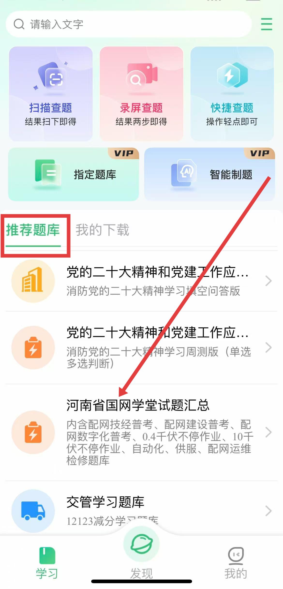 1、打開(kāi)小包搜題APP,在學(xué)習(xí)界面的推薦題庫(kù)中,選擇想下載的題庫(kù)。