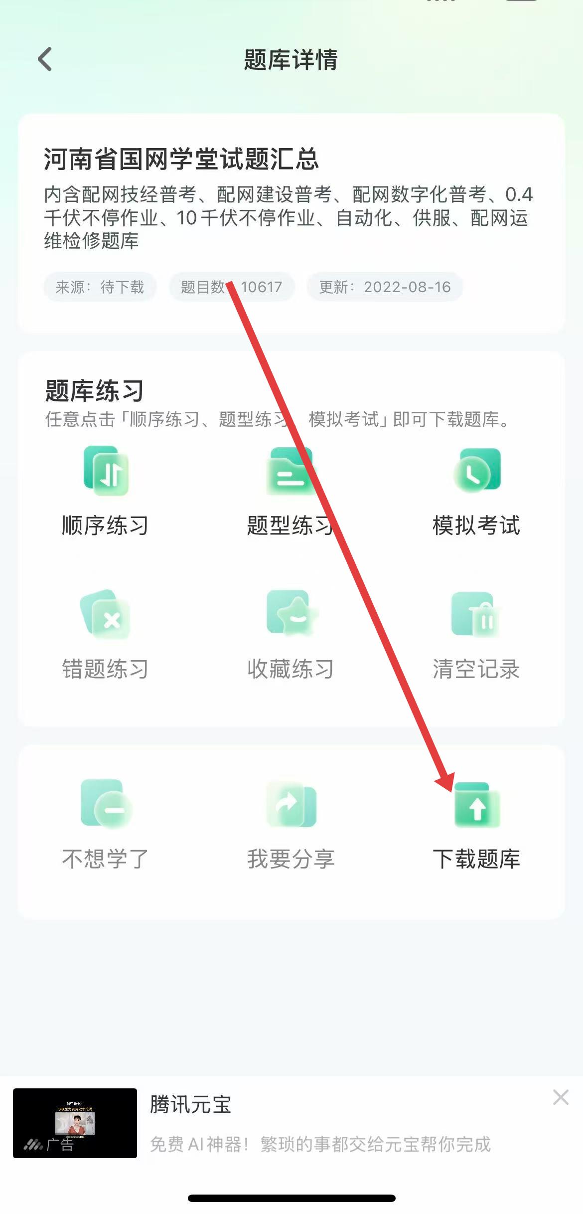 2、進(jìn)入題庫(kù)詳情頁(yè)面,點(diǎn)擊下方下載題庫(kù)按鈕開(kāi)始下載。