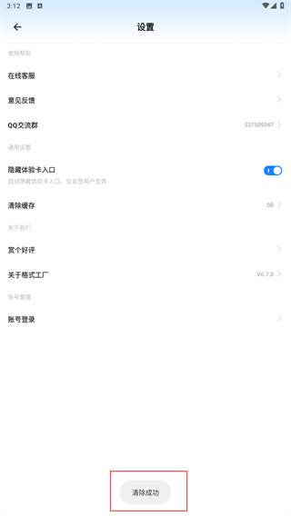 3、點擊后,當(dāng)下發(fā)顯示清除成功的字眼表示已清除成功。