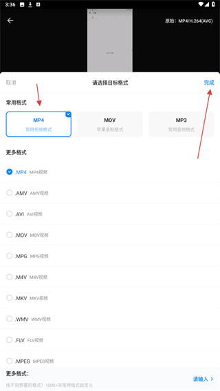 4、選擇好格式后,再點擊右上完成的按鈕即可轉(zhuǎn)換成功。
