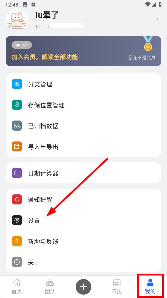 1、打開到期清單app,點(diǎn)擊底部導(dǎo)航欄中我的,在列表里找到設(shè)置選項(xiàng)并點(diǎn)擊進(jìn)入設(shè)置界面。