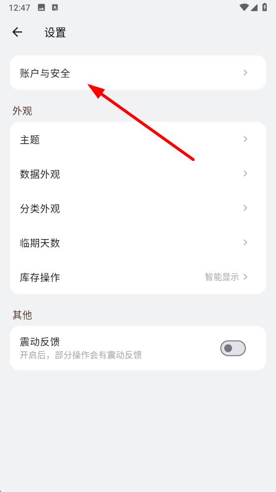 2、進(jìn)入設(shè)置界面后,點(diǎn)擊賬戶與安全選項(xiàng),進(jìn)入賬戶安全相關(guān)設(shè)置頁面。