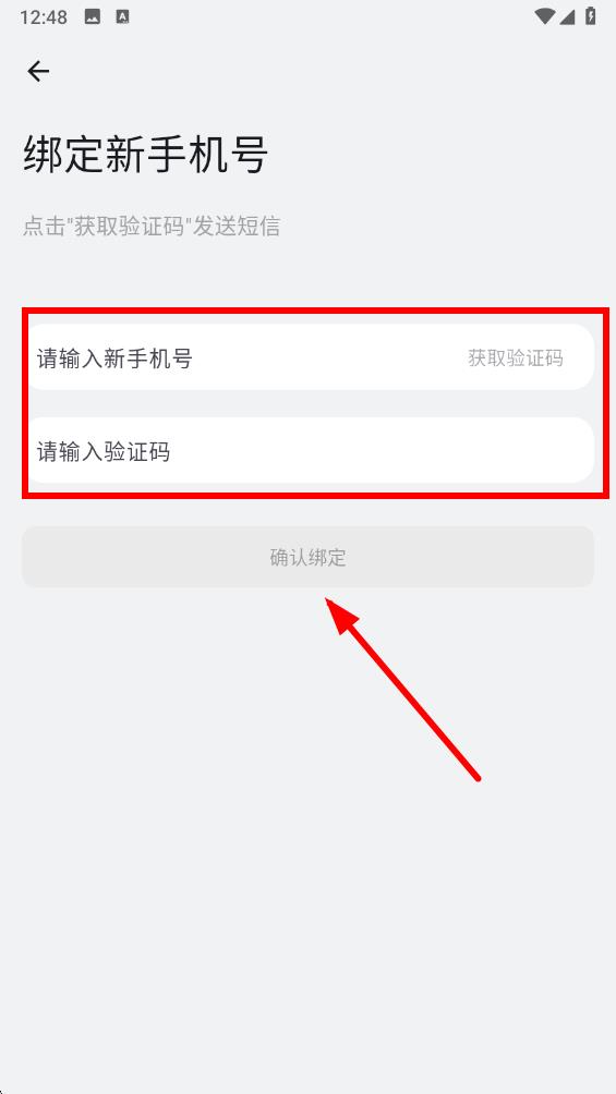 4、在綁定新手機(jī)號頁面,輸入新手機(jī)號,點(diǎn)擊獲取驗(yàn)證碼并填入收到的驗(yàn)證碼,點(diǎn)擊確認(rèn)綁定完成手機(jī)號綁定。