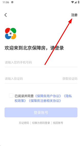 3、在登錄界面,點擊右上角的注冊選項,進入賬號注冊頁面。