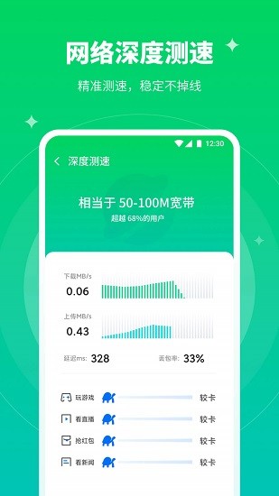 網(wǎng)速測(cè)速功能,可以測(cè)出您的網(wǎng)絡(luò)速度水平;