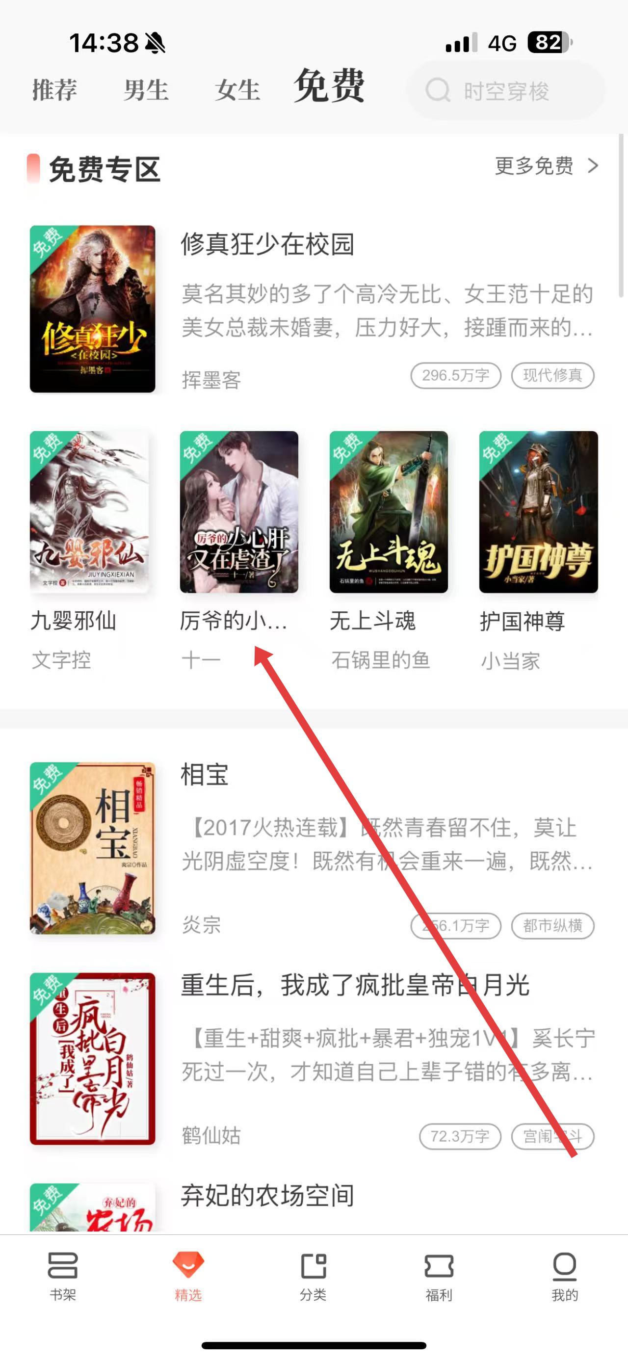 1、打開(kāi)文淵閣小說(shuō)App,在免費(fèi)界面選擇想讀小說(shuō)進(jìn)入閱讀頁(yè)。
