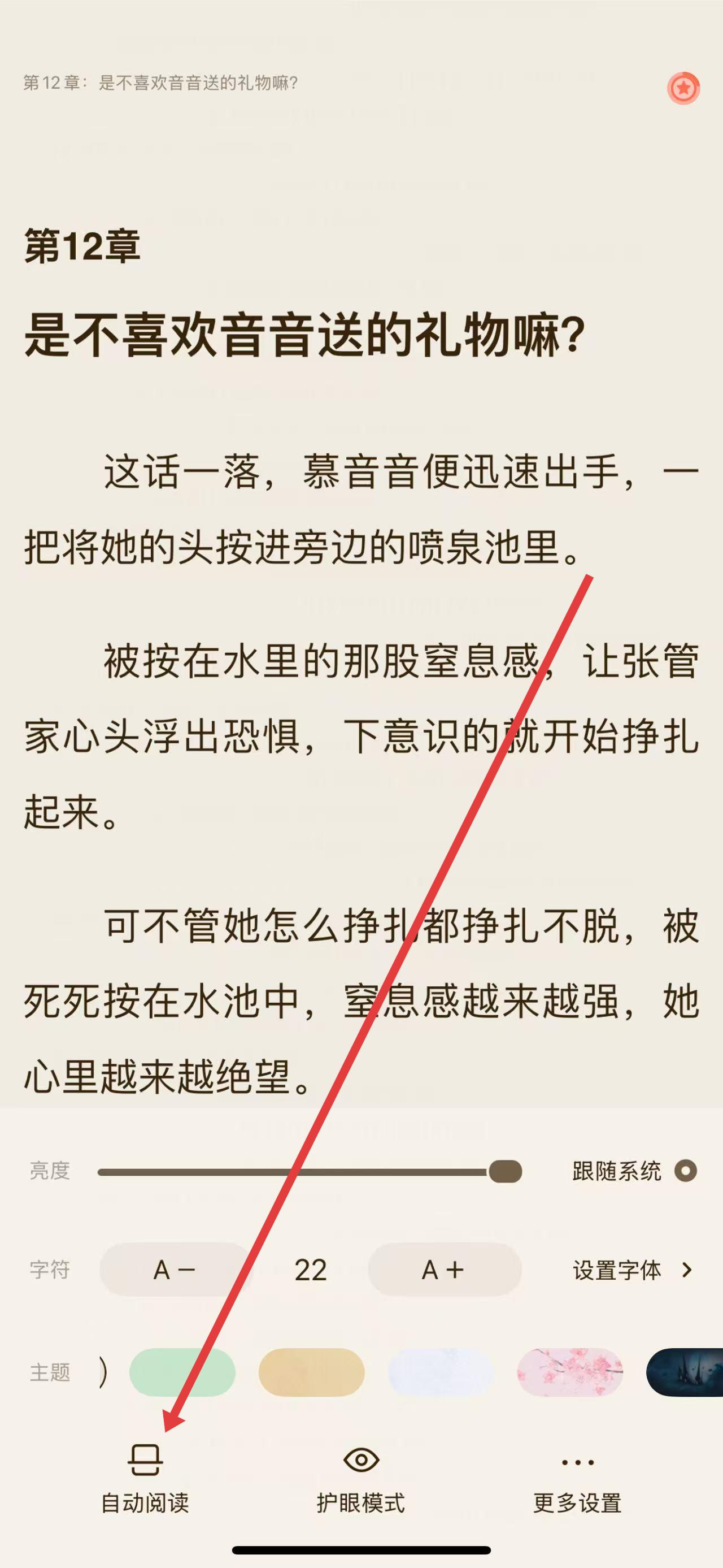 3、在設(shè)置界面中,點(diǎn)擊自動(dòng)閱讀按鈕開(kāi)啟自動(dòng)閱讀功能。