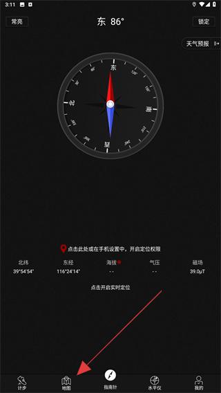 1、啟動(dòng)地圖指南針APP,在首頁下方點(diǎn)擊地圖的圖標(biāo)。