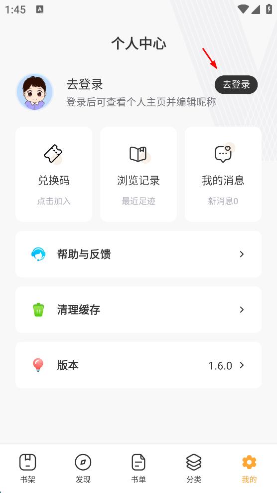 1、打開(kāi)閱讀軟件,進(jìn)入首頁(yè)后,點(diǎn)擊頁(yè)面右下角“我的”,進(jìn)入個(gè)人中心頁(yè)面。