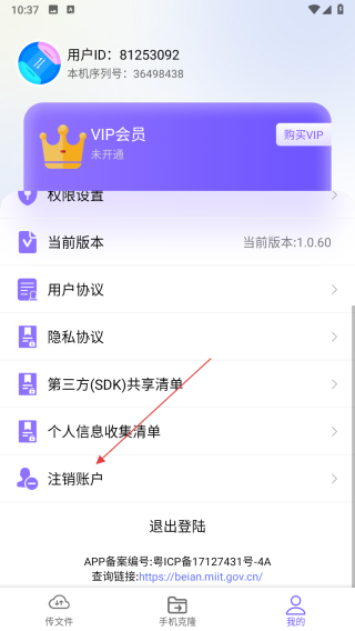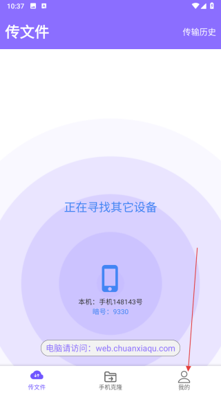 1、打開手機(jī)克隆專家APP,在傳文件頁面點(diǎn)擊右下角我的選項(xiàng),進(jìn)入個(gè)人頁面。