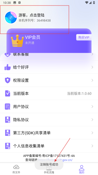 4、完成操作后,頁面顯示注銷賬號(hào)成功,賬號(hào)變?yōu)橛慰?,點(diǎn)擊登陸狀態(tài),即完成賬號(hào)注銷。