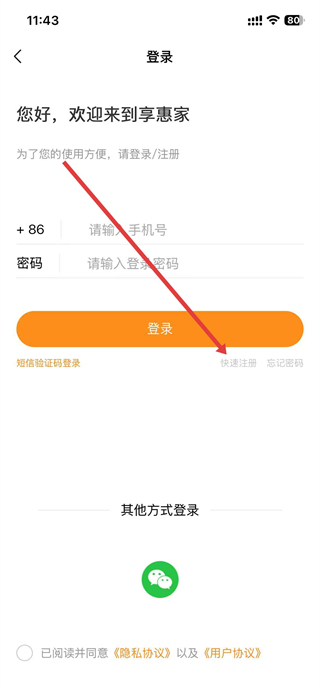 3、在登錄頁面,找到并點(diǎn)擊快速注冊(cè)選項(xiàng)。