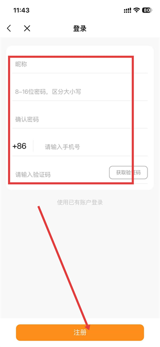 4、填寫信息,點(diǎn)擊注冊(cè),即可成功登錄賬號(hào)。