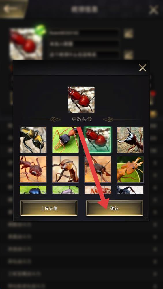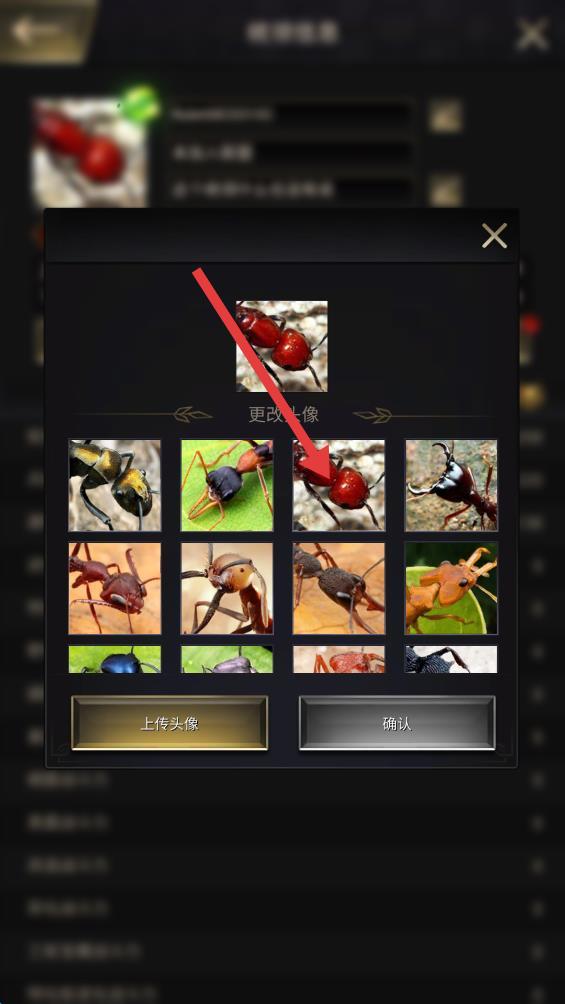 3、在更換頭像界面中,從頭像選項里選擇喜歡的螞蟻頭像并點擊。