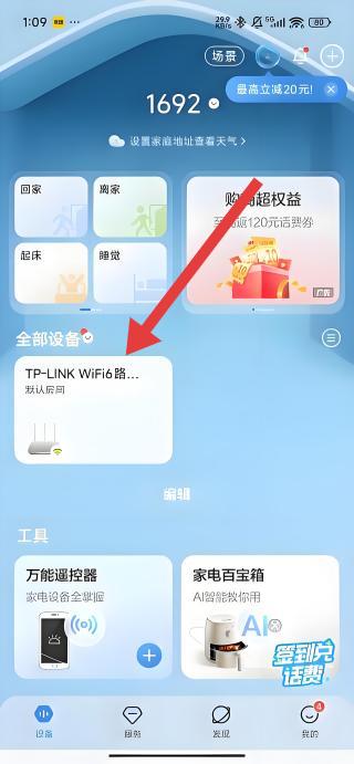 1、打開應(yīng)用,在全部設(shè)備區(qū)域點擊TP-LINK-WiFi6路由器,進入該設(shè)備的詳情頁面,準(zhǔn)備進行WiFi設(shè)置操作。