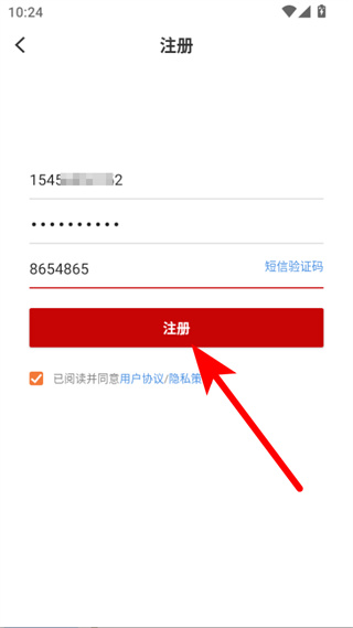 4、勾選已閱讀并同意用戶協(xié)議/隱私策略后,點(diǎn)擊注冊按鈕,即可完成賬號注冊。