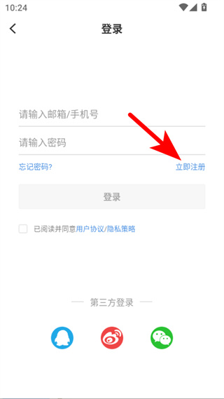 2、在登錄頁面點(diǎn)擊立即注冊選項(xiàng),進(jìn)入注冊頁面。