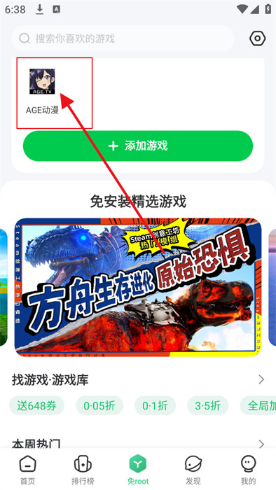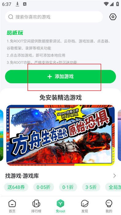 2、隨后,點擊中間的綠色按鈕【添加游戲】,會自動跳轉(zhuǎn)頁面;