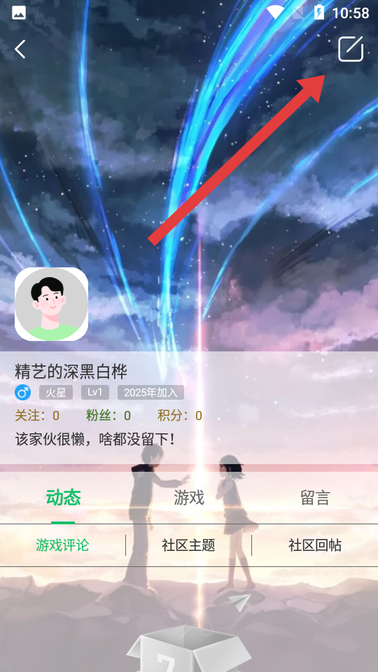 1、進入我的頁面后點擊個人頭像區(qū)域,進入個人空間的頁面,點擊右上角編輯的按鈕。