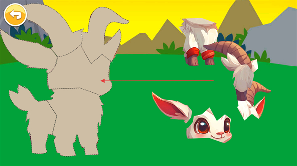 2、將右側(cè)的動(dòng)物部件拖動(dòng)到左側(cè)對(duì)應(yīng)的輪廓位置。