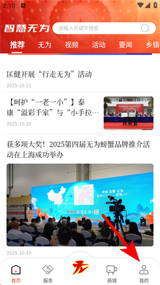 1、打開智慧無為app,點擊底部我的按鈕,進(jìn)入個人的頁面。