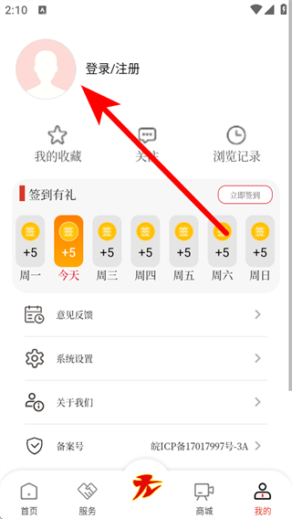 2、在個人的頁面,需要點擊登錄/注冊按鈕,進(jìn)入登錄頁面。