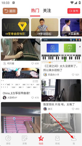 1、打開笛子教練APP,點擊上方的動態(tài)選項。