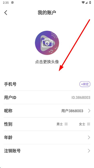 4、在我的賬戶界面,可修改頭像、昵稱、性別、年齡等個(gè)人資料,完成后即可保存修改。