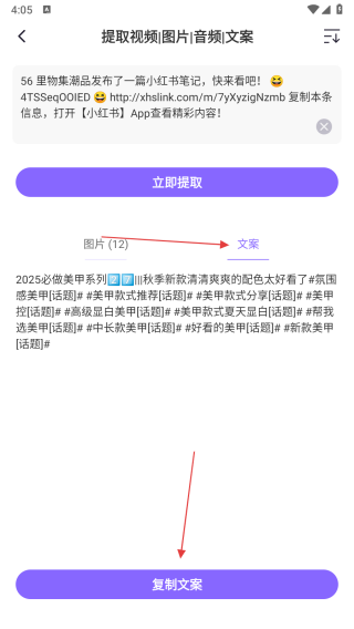 4、點擊文案標簽切換到文案頁面,接著點擊復制文案按鈕,就能將文案復制到剪貼板,方便后續(xù)使用。