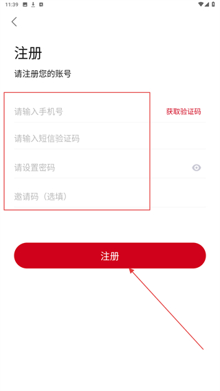 4、輸入手機號、驗證碼以及密碼,再點擊注冊的按鈕。