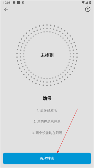4、若搜索結(jié)果顯示未找到,檢查藍(lán)牙是否激活、點(diǎn)擊再次搜索按鈕重新進(jìn)行查找。