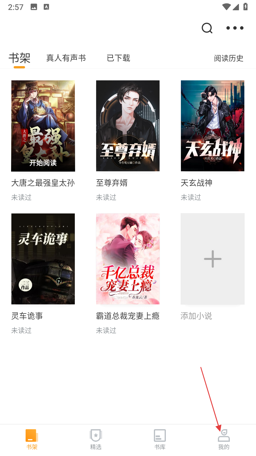 1、打開愛看書軟件,點(diǎn)擊頁(yè)面右下角我的,進(jìn)入個(gè)人中心頁(yè)面。