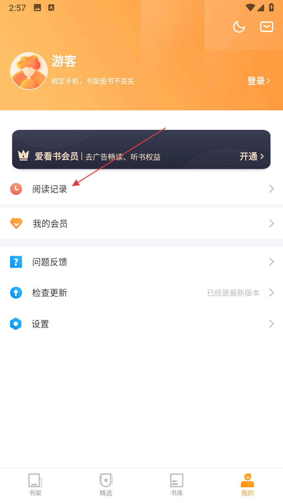 2、在個(gè)人中心頁(yè)面,找到閱讀記錄選項(xiàng)并點(diǎn)擊。