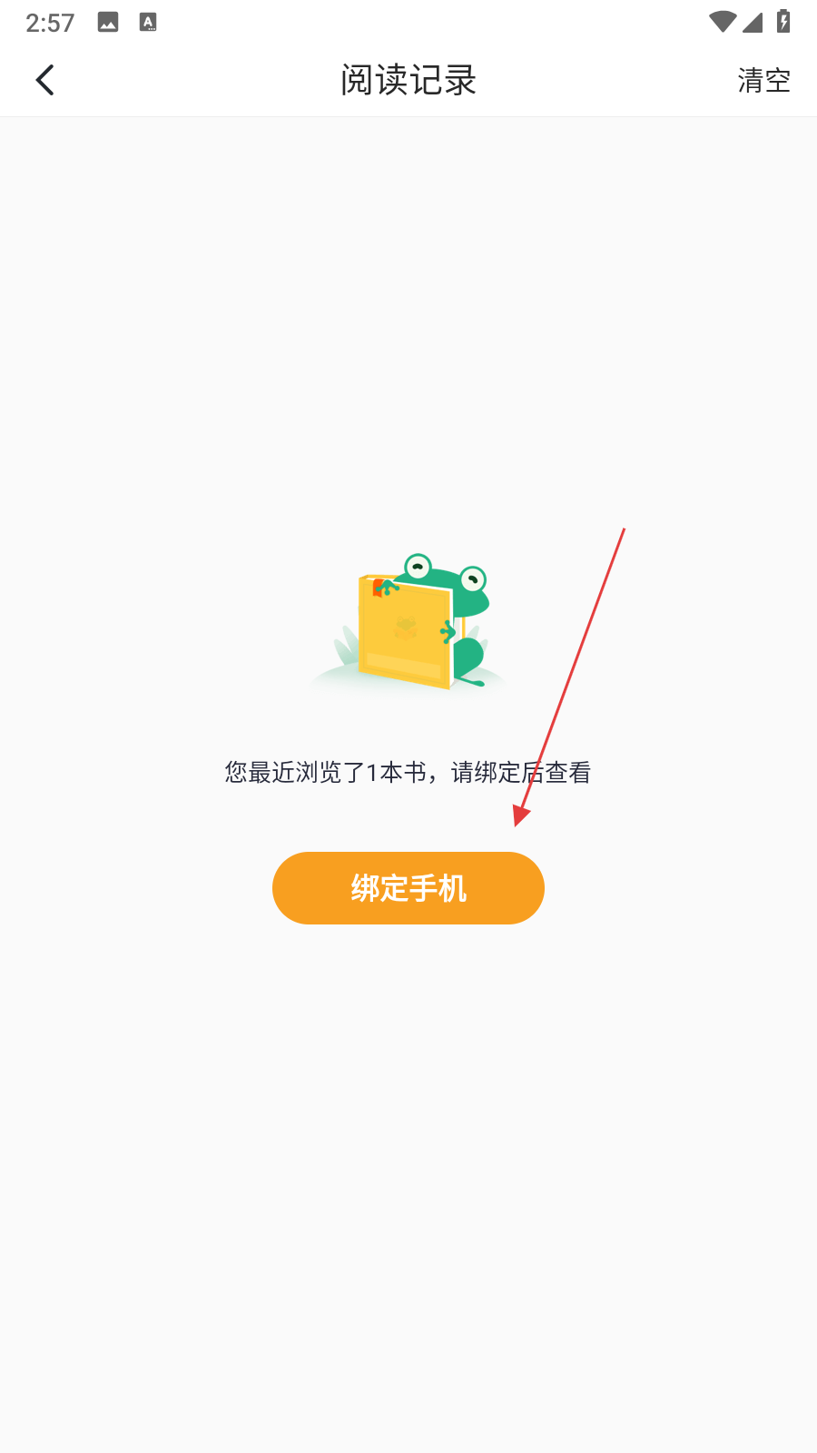 3、進(jìn)入閱讀記錄界面,點(diǎn)擊閱讀記錄界面中的綁定手機(jī)按鈕。