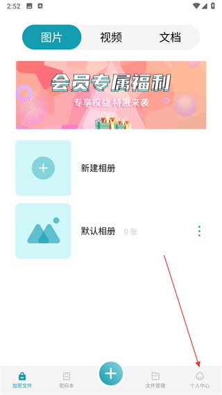 1、打開偽裝計算器應(yīng)用,點擊右下角個人中心選項。